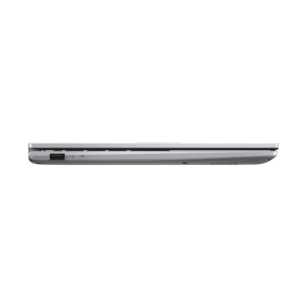 Asus Vivobook X1404VA-NK394W với lớp vỏ nhựa màu bạc sang trọng, phù hợp cho môi trường học tập và công sở. Kích thước 32.49 x 21.39 x 1.79 cm và trọng lượng chỉ 1.4 kg, dễ dàng xếp vào ba lô và mang theo mỗi ngày. Máy mỏng nhẹ tới mức người dùng có thể mở bằng một tay, giúp thuận tiện khi sử dụng.